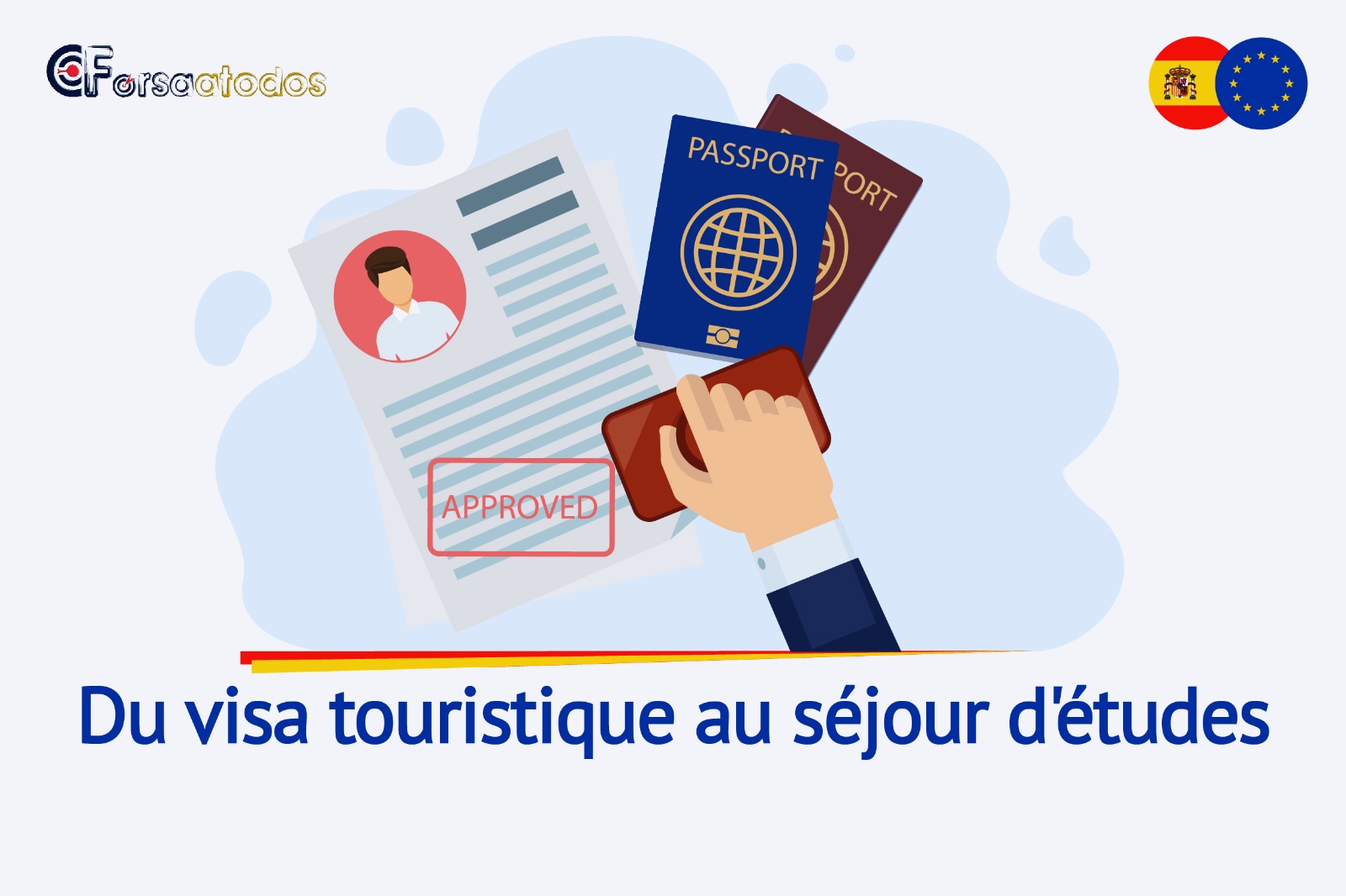 « Que vous disposiez d’un visa touristique, d’une carte de séjour pour études ou d’une carte de séjour pour travail délivrée par l’un des pays mentionnés ci-dessus, vous avez la possibilité de demander le changement et d’obtenir la carte de séjour pour études en Espagne..”